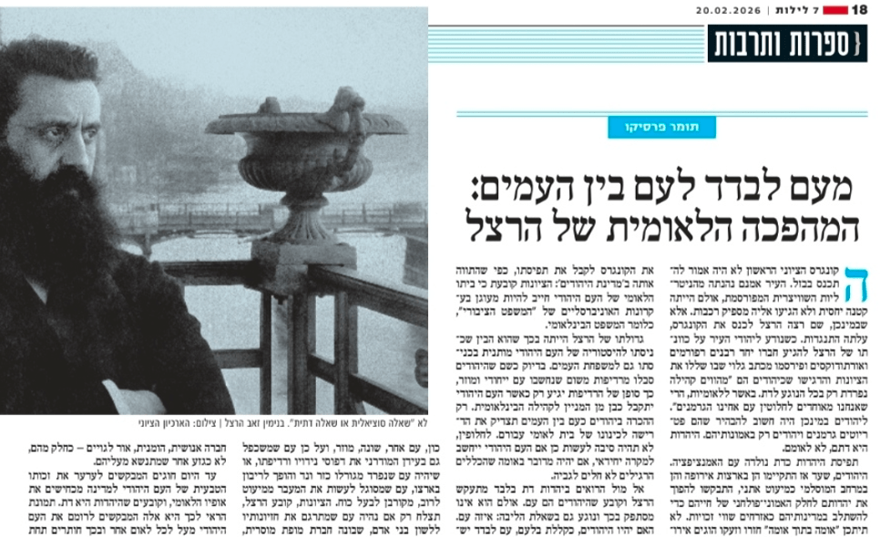 [פורסם במוסף 'ספרות ותרבות' של ידיעות אחרונות כחלק מפרוייקט מיוחד לרגל מלאת 130 שנה לספר 'מדינת היהודים']