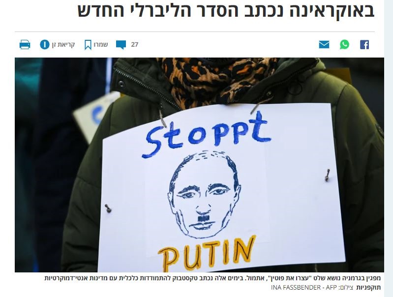 המלחמה הגיעה למשבר הליברליזם בדיוק בזמן. מדינות המערב, שגלשו מתוך שובע לסלסולים בארוקיים של דקדוקי מוסר ולצרכנות דקדנטית, ניצבות פתאום – שוב – אל מול איום מזויין מאת דיקטטור. אהדתו של טראמפ, כמו גם של טראמפיסטים כטאקר קרלסון או סטיב בנון, לפוטין, נראית כעת מטורללת בברור, כמו גם התחכמויות ה"קיצונים משני הצדדים" של תנועות שמאל כמק"י. אלימות מחדדת ערכים, לטוב ולרע.