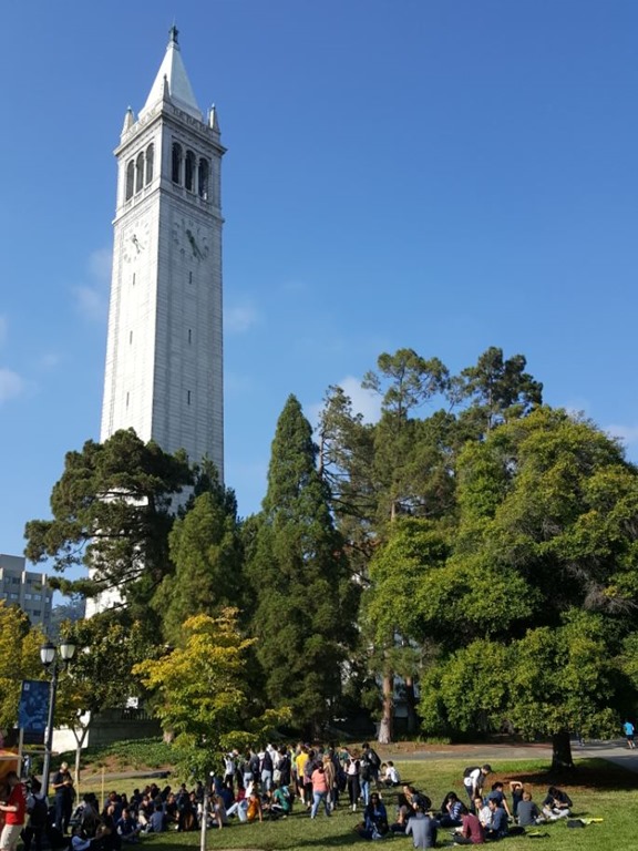 הקמפוס הוא בעצם פארק. הוא משתפל על צלע גבעה גדולה ונחל זורם לאורכו. עצים מטופחים, תאווה לעיניים ונחמדים להשכיל, נטועים לאורכו ולרוכבו, מדשאות מוריקות רובצות בכל פאה פנויה ומכל צלע מתנשאים מבנים עצומים, נאו-קלאסיים. עמודים דוריים מעטרים את כניסותיהם של אלה, מחדירים בסטודנט ענווה ראשונית שמוחלפת במהרה בגאווה על כך שהוא ולא אלפי אחרים זוכה להשלים דיפלומה בינותיהם. שני שליש במעלה הגבעה עומד מגדל-שעון עצום המעוצב כהומאז' לקמפנילה די סן מרקו בונציה. מהמגדל בונציה הדגים ב-1609 גלילאו גליליי את יכולות הטלסקופ. קשה שלא לחשוב שהארכיטקטים בברקלי כיוונו את עיניהם לתעוזה המדעית, האיקונוקלסטית, בה אחז גליליי.