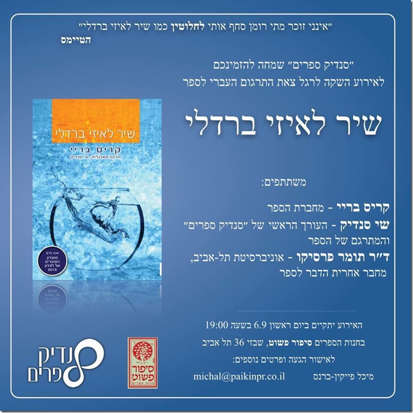 זוהי אחרית דבר שכתבתי לספר שיר לאיזי ברדלי, רומן (מצויין) שמספר על התמודדותה של משפחה מורמונית עם אבדן. ביום ראשון הקרוב אדבר על המורמונים באירוע השקת הספר: