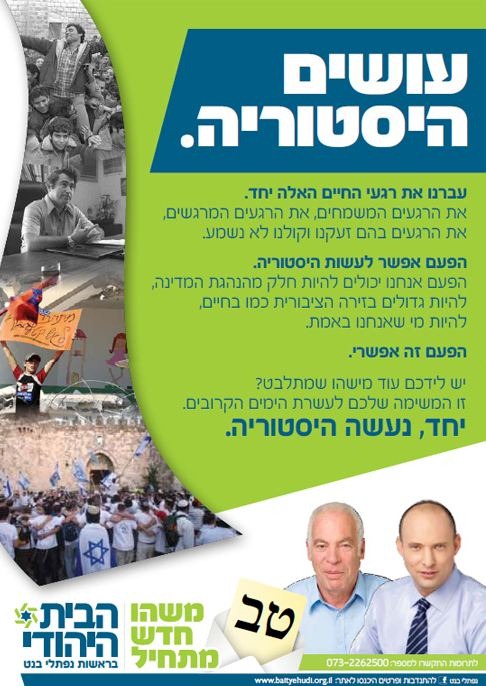 במילים אחרות, בנט מתנחל בלבבות בגלל שהוא לא מתנחל על הגבעות. היישוב היהודי ביהודה ושומרון אינו יותר פופולרי היום מכפי שהיה בימי רבין (לפני הרצחו). יש כלפיו סימפטיה מסויימת, אבל גם סלידה. ומי כבנט מבין זאת. לו לא היה מבין זאת הוא לא היה צריך להמציא את 'ישראל שלי' כפרונט של מועצת יו"ש. רק ארגון שלכאורה לא קשור להתנחלויות (ובראשו צעירה תל-אביבית חילונית) היה יכול לסחוף אחריו את הקהל שסחף (ששיעורו, אגב, בכל מקרה לא היה מרשים במיוחד). בנט גם לא היה מקפיד כל כך לא להראות את פניו של אורי אריאל בשום מודעת תעמולה (חוץ מאלה שמתפרסמות ב'מקור ראשון') אם הוא לא היה מבין שמדובר בנטל אלקטורלי בכל הנוגע לציבור הישראלי הרחב.