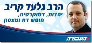 מצד שני, בין המתמודדים בבחירות המוקדמות לרשימת העבודה אפשר למצוא, לראשונה אם איני טועה, רב רפורמי. הרב גלעד קריב ינסה להפוך לחבר כנסת, ותחת הסיסמה "יהדות, דמוקרטיה, חופש דת ומצפון", ייתכן שהוא יהיה בין הנאבקים לחופש דת במדינה. לקראת הבחירות ביקשתי ממנו לענות בקצרה על כמה שאלות, מתוך ניסיון להבין את עמדתו בסוגיות של חופש דת, ובכמה סוגיות אחרות. תשובותיו לפניכם.