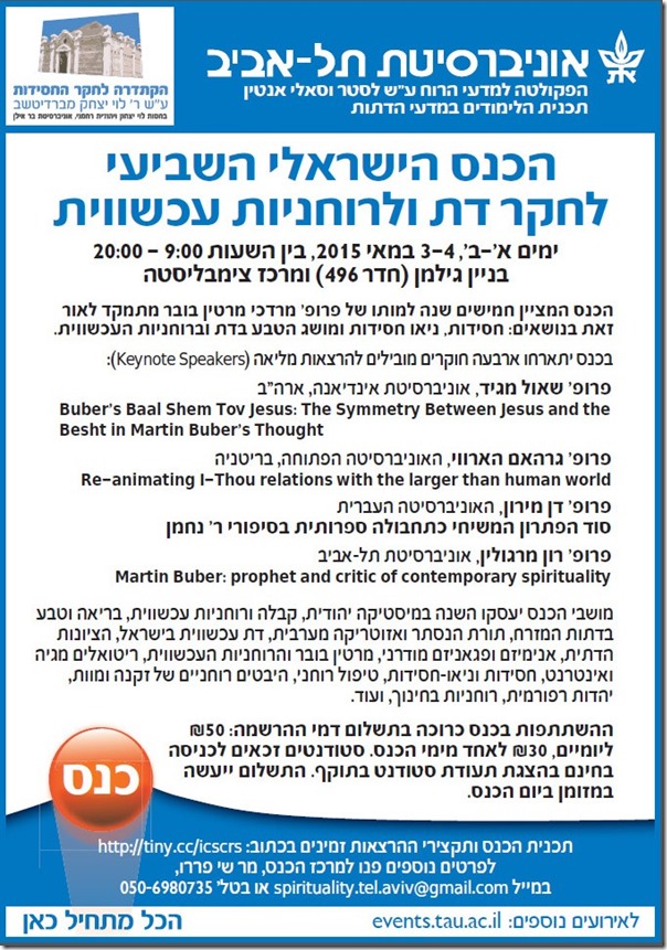 השנה הכנס ייערך בסימן חמישים שנה למותו של מרטין בובר, תחת הכותרת חסידות, נאו-חסידות ומושג הטבע בדת וברוחניות העכשווית.