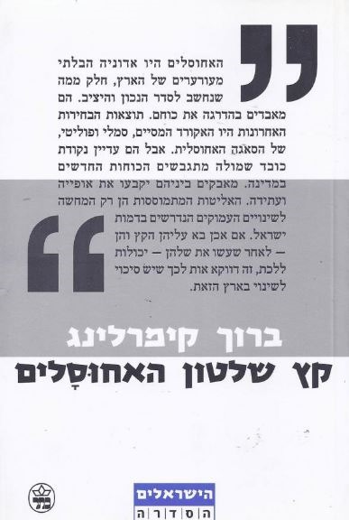 קימרלינג ללא ספק העמיק יותר מאלמוג. הוא הספיד את האחוס"לים — את קבוצת האשכנזים, חילונים, ותיקים, סוציאליסטים, ולאומיים שהקימה את המדינה, ושניסתה, מתוקף תפיסת ה"ממלכתיות" הקולקטיביסטית שבה החזיקה ותוך שימוש בכור ההיתוך הכוחני, לעצב אותה בצלמה ובדמותה. היא נכשלה בכך, ומאז שנות השבעים נסוגה בהדרגה מעמדות השליטה וההשפעה שלה. את מירב האחריות בנוגע ל"דעיכתה של הישראליות" (כשם אחד מספריו באנגלית) הטיל קימרלינג על גוש אמונים — עמדה שהיא בפני עצמה אחוסלית למדי. ראש החץ המשיחי של הציונות הדתית העלה כביכול מהאוב את היסודות הדתיים והאתנוצנטריים המובלעים בציונות החילונית, ואיפשר להם לפרוץ ימה וקדמה וצפונה ונגבה (אבל בעיקר קדמה). ההומניזם האוניברסלי בלבבות האחוסלים והאתוס האזרחי־רפובליקאי של המדינה הצעירה היו חלשים מדי מכדי להתנגד. שניהם דעכו.
