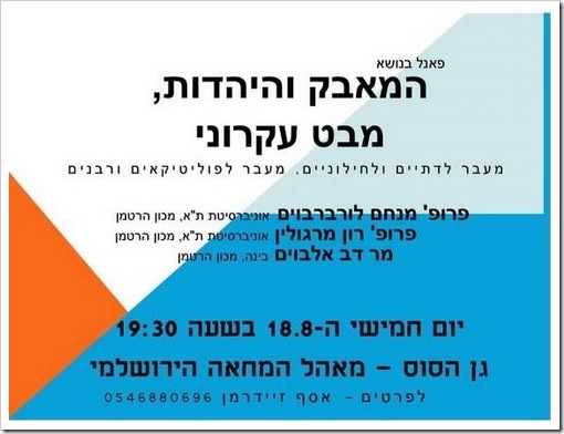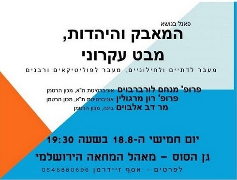 האיזון הופר, ונדרש ניסוח מחודש של החוזה החברתי. התקדמות לקראת סטטוס קוו חדש תוכל להתבסס רק על ההכרה של כל צד בחשיבותו של הצד השני. האמת הפשוטה היא שמדינת ישראל לא יכולה לשרוד כלכלית וביטחונית ללא החברה החילונית-ליברלית וללא כינונה בתוך הסדר הליברלי. מנגד יש להכיר בתרומה הסגולית של הקבוצות האחרות בהון תרבותי וזהותי.