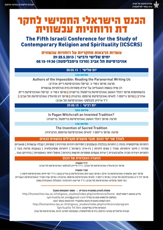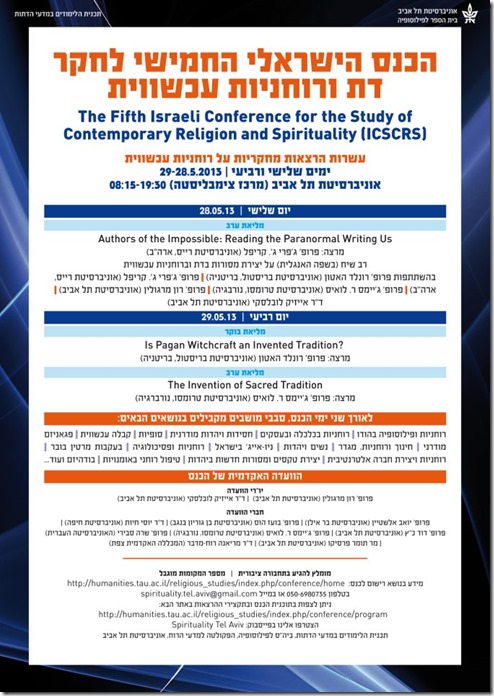 הכנס הישראלי החמישי לחקר הדת והרוחניות העכשווית יתקיים כאמור באוניברסיטת תל-אביב ב-28-29 למאי. כאן התוכנייה. אין צורך בהרשמה מראש. כדאי להגיע.