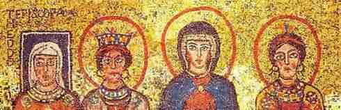 על פי הכיתוב באתר של האגודה לכמרים נשים קתולים/יות, הפסיפס הזה, המכונה "הבישוף[ית] תיאודורה", מוצג בכנסיית פרקסדיס והוא כנראה מהמאה התשיעית. הוא מציג בכחול את הבתולה מריה, משמאלה הקדושה פודנטיאנה, ומימינה הקדושה פרקסדיס, ששתיהן שימשו כמנהיגות בכנסיות הנוצריות הקדומות. הכוונה היא כמובן לומר, אנחנו רק מחדשות מסורת שהיתה ונגדעה.