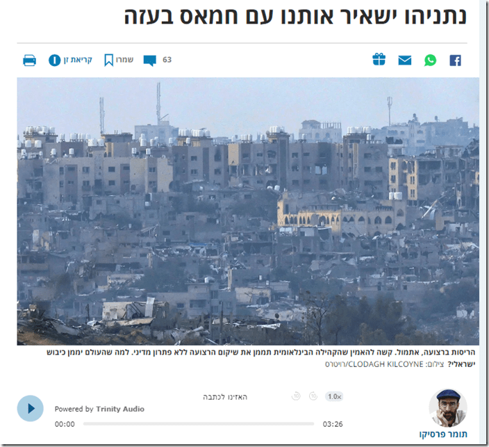 האנושות תזכור, ההיסטוריה תרשום ותעיד, אלוהים ידע וישפוט. לא נחמוק. כל רגע שאנחנו לא מתגייסים כדי לשים לזה סוף יעמוד לגנותנו במשפט הדורות. לא נחמוק. טראמפ יילך, נתניהו יילך, אבל צלם אלוהים שבאדם יישאר, המוסר האנושי הבסיסי יישאר, ואנחנו נימדד מולם.