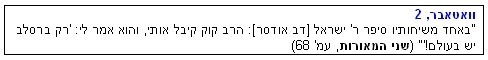 בימי נעורי הייתי דתי, […] אחרי כן נחמצתי ולא נזהרתי בקלות ולא בחמורות. [… כשהוא הגיע בפעם השניה לארץ ישראל הוא קפץ למצריים] הלכתי להתפלל בבית הכנסת שהרמב"ם התפלל בו ועברתי לפני התיבה. ואז חל בי השינוי, שכן התפילה היתה מתוקה בפי ומלאה דבקות. כאשר שבתי למלוני קידשתי על הכוס, ניגשתי לכיור ונטלתי את ידי, בירכתי על הנטילה ועל הפת וכן ברכה אחרונה, דברים שלא עשיתי שנים רבות. מאז אני דתי במלוא מובן המילה. אמרתי בלבי, אם אדם זוכה לעלות לארץ הקדושה עליו להיות שומר מצווה, ועליו להמשיך בדרך אבותיו. (עמ' 21)