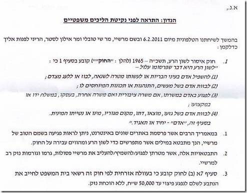 למעלה גם התנוסס הלוגו של העו"ד – לא נציין את שמו כדי לא להביך אותו. מסתבר ששי טובלי מרגיש שהמאמרים שפרסמתי עליו פוגעים בשמו הטוב, ומסתבר ש"בשלב זה" ו"לצורך פשרה בלבד" טובלי יהיה מוכן "לסלק כל דרישה/תביעה" כנגדי בתנאי שאסיר את כל המאמרים שמזכירים אותו, אפרסם התנצלות בכל האתרים בהם פורסמו הדברים, ואפצה אותו בסכום של 100,000 ש"ח – כל זה תוך 48 שעות.